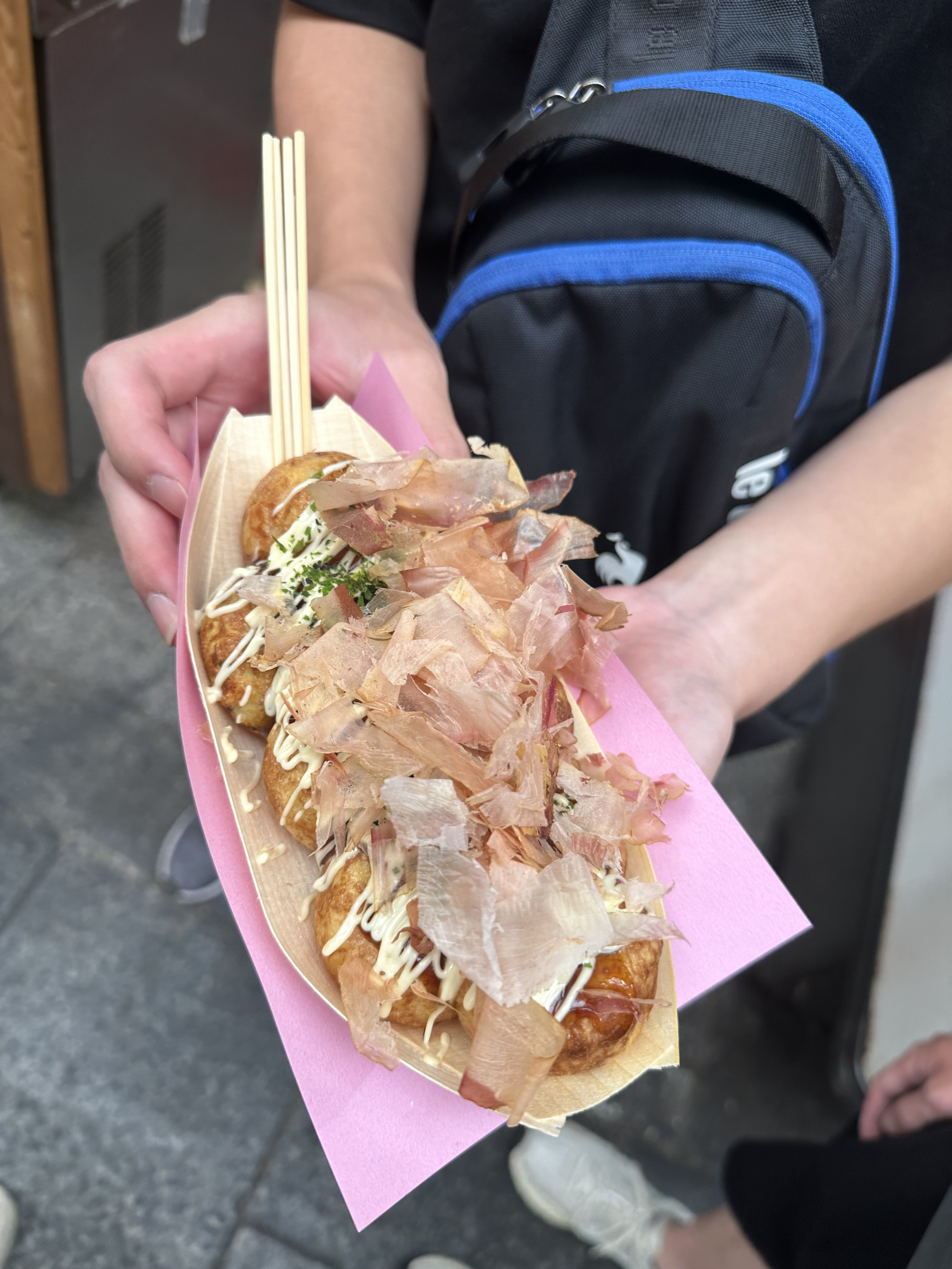 黑門市場感覺就是給觀光客去的,物價偏貴,我們在一家天婦羅攤吃了早餐,然後買了章魚燒,都很普通