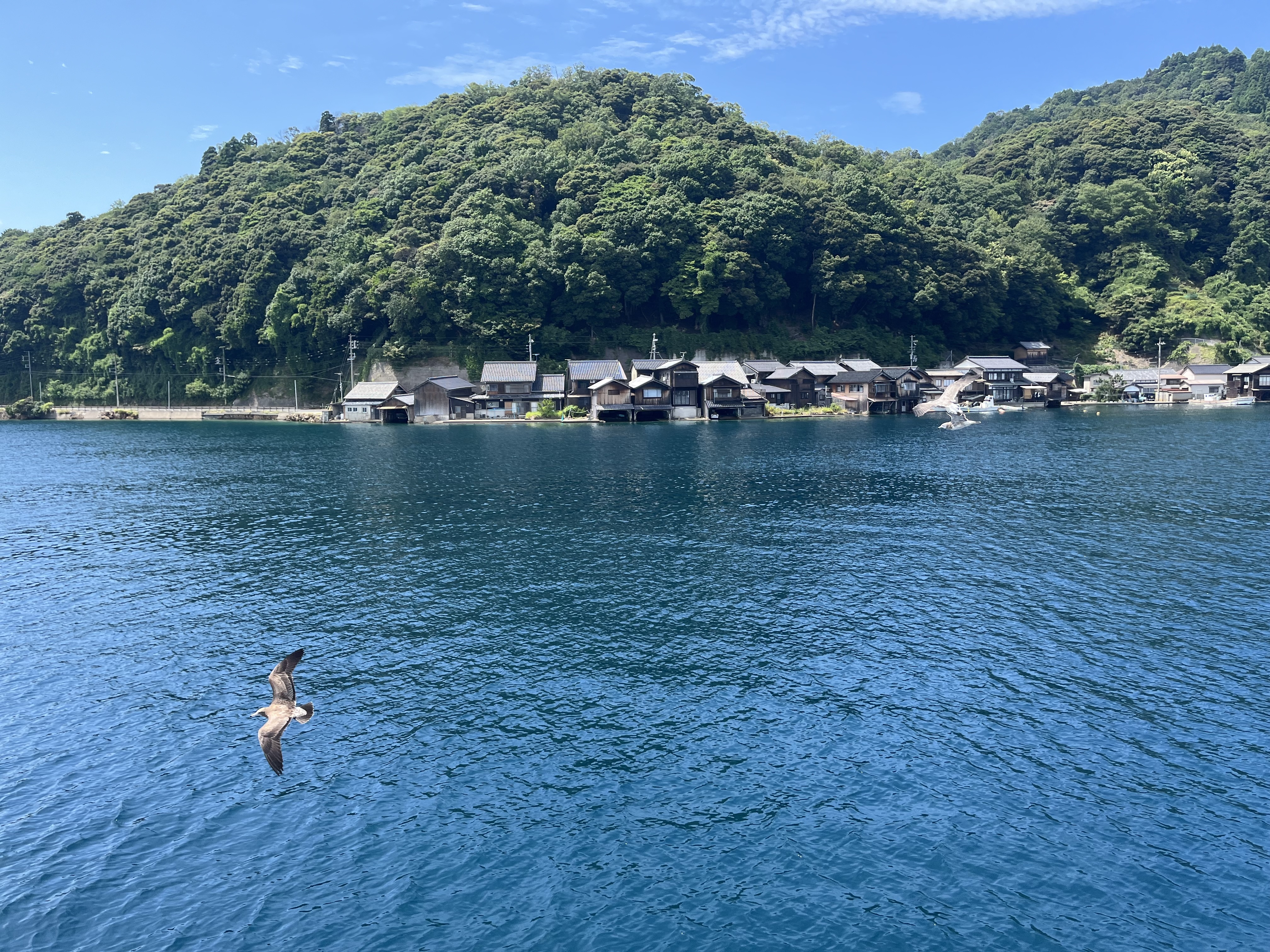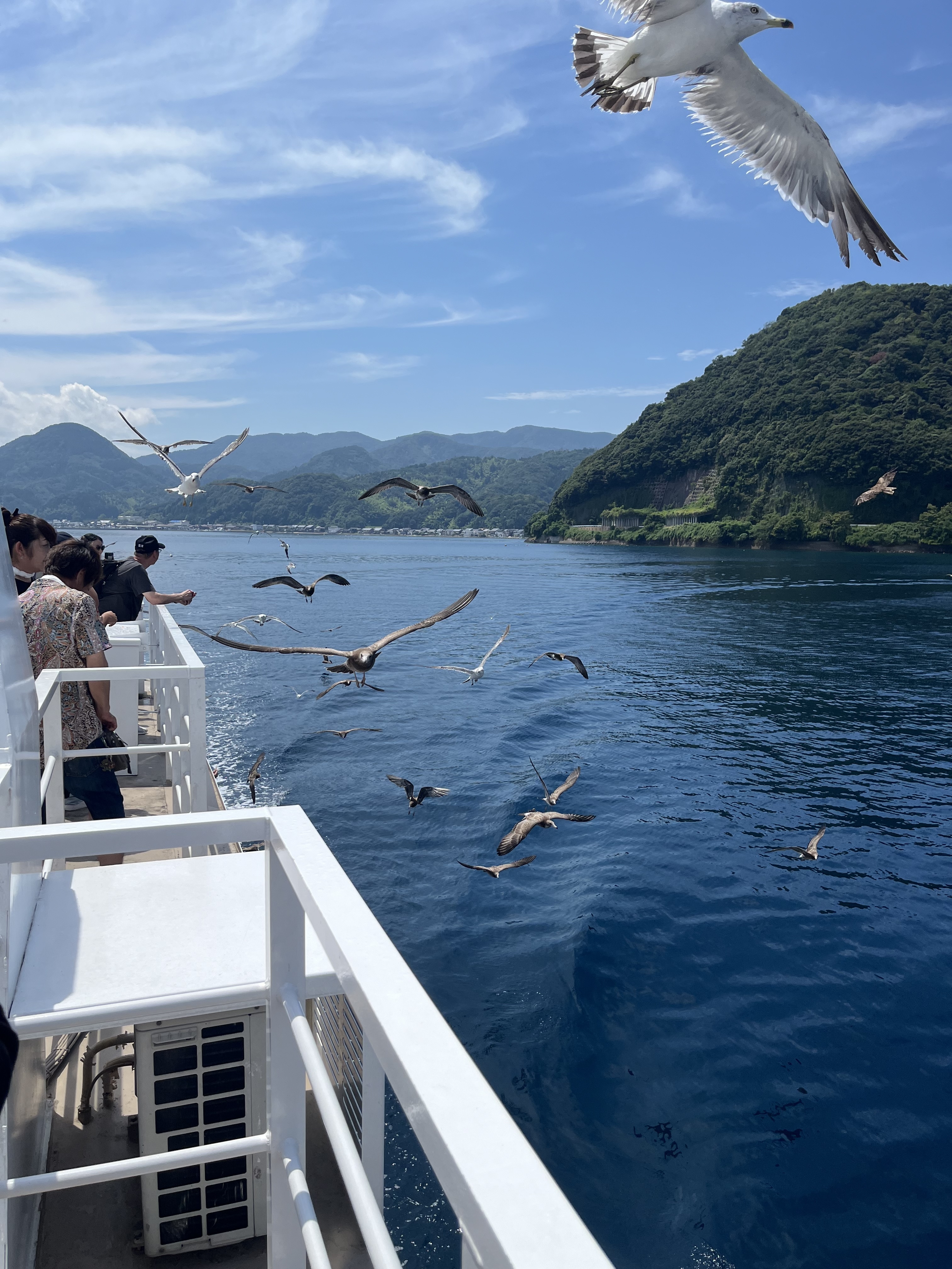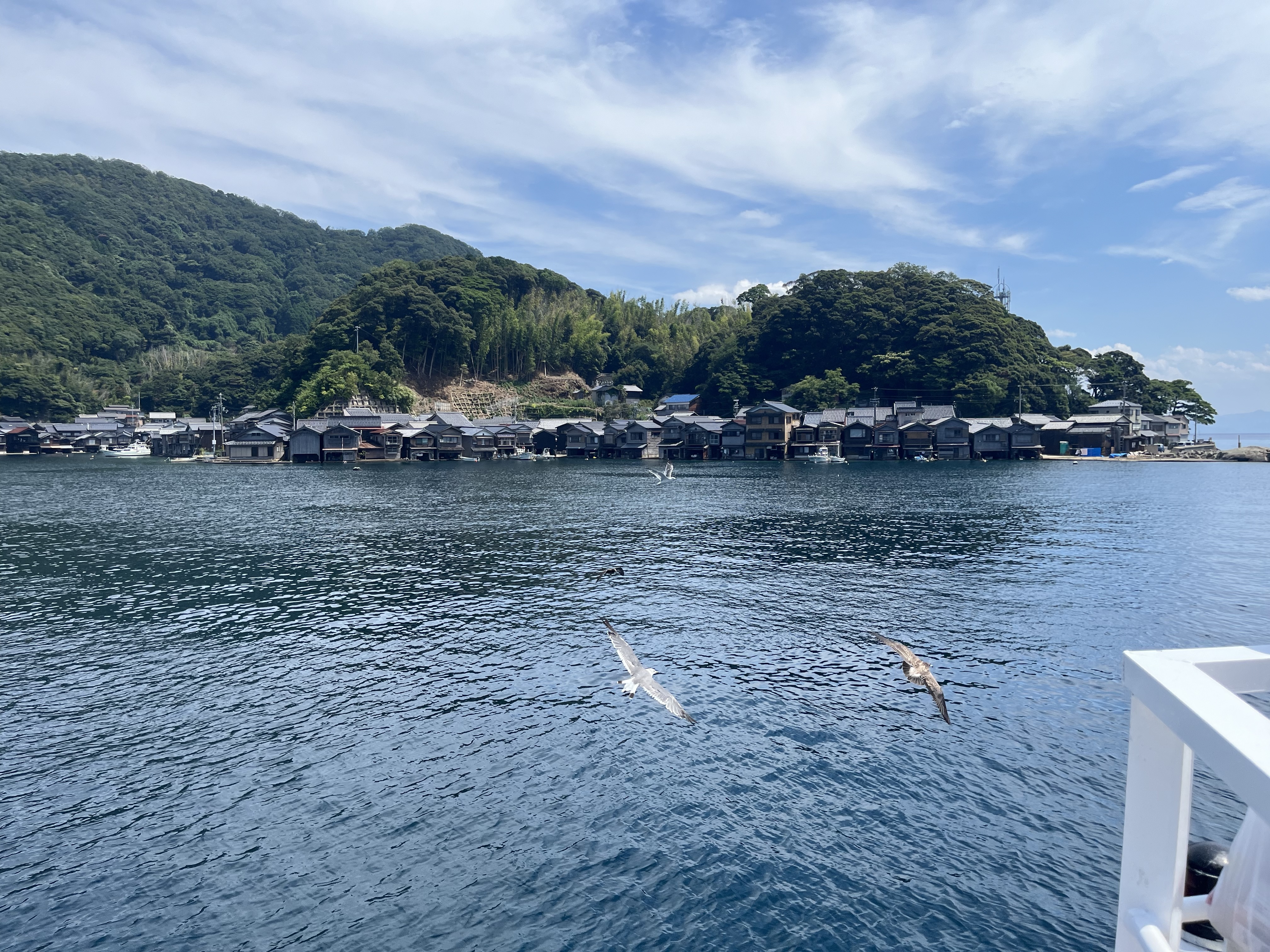 接著搭船前往伊根,順便在船上餵海鷗,比想像中可怕手有被海鷗(還是老鷹)抓傷