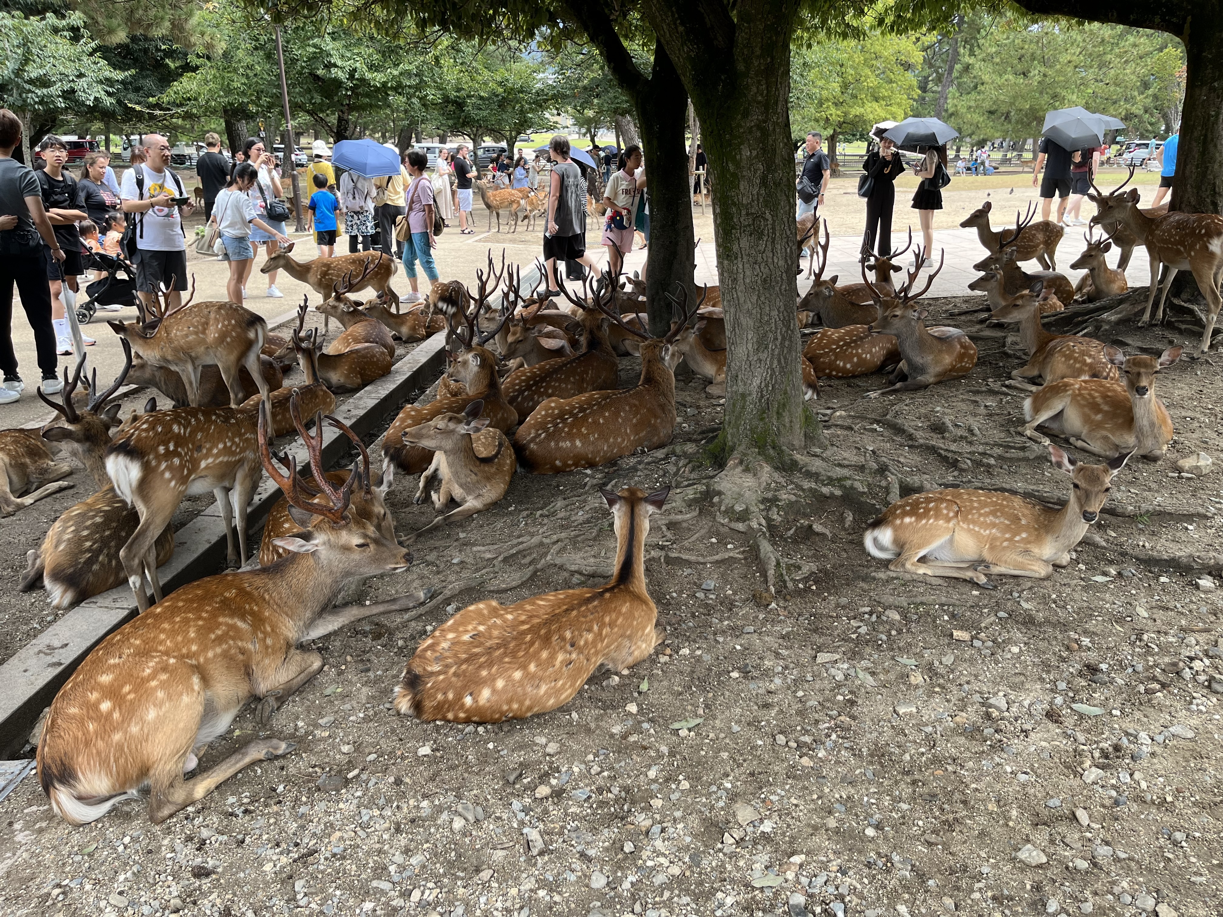 今天的行程是奈良並離開京都,前三天太累今天就是睡到自然醒才起床,結果碰到難得的電車誤點,10點搭上了8點的車,最後大概11點到奈良,轉公車後大概11點半到奈良公園