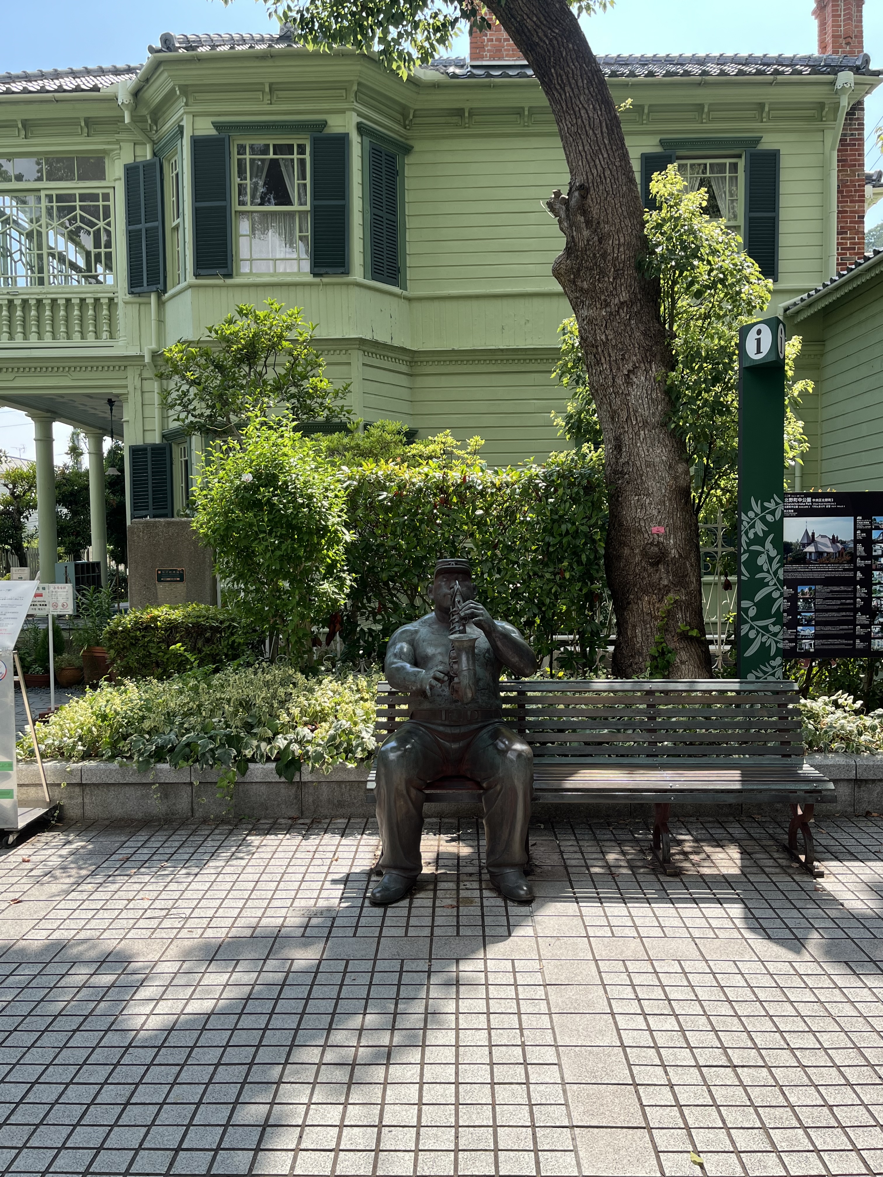 吃完後準備搭巴士去北野異人館,但恭喜上錯站了,我們上車的剛好是北野異人館的下一站,巴士又是環線,所以只好先去海邊的美利堅公園,但中午實在太熱拍了幾張照就離開了,本來這個點是晚上來看夜景的說